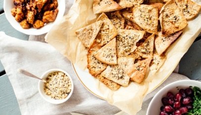 Read More »Dukkah Dusted Pita Chips with Barbecued Tempeh + Grape Salsa